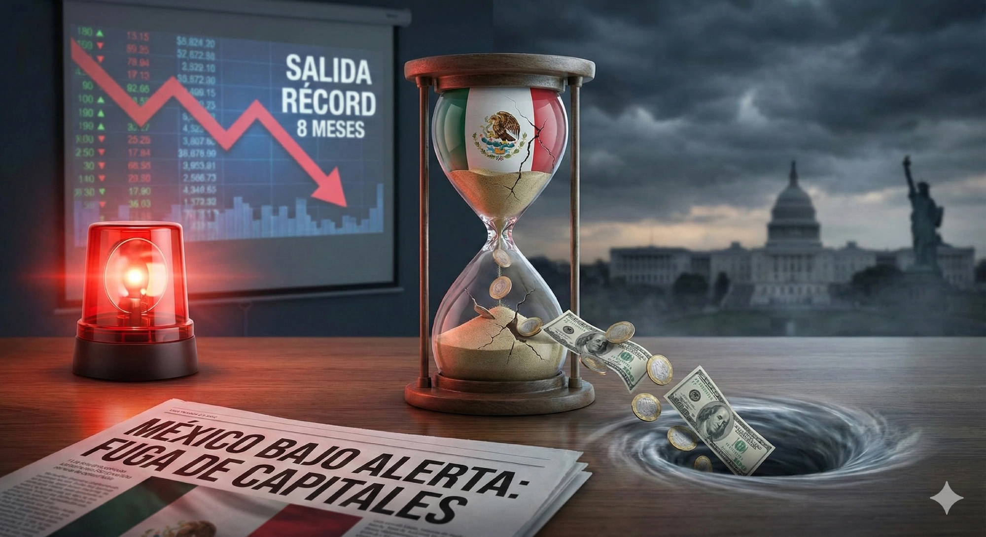 México vuelve a encender las alarmas financieras. Noviembre registró una salida de capitales por 5,168.66 millones de pesos en valores gubernamentales, hilando ocho meses consecutivos de retiro de inversión extranjera.